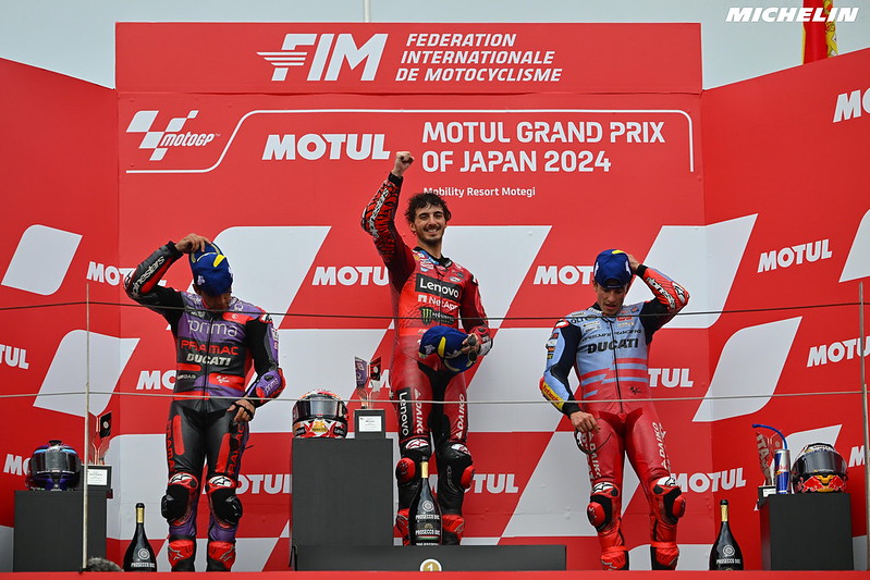 Pecco, nous allons commencer la conférence de presse avec vous. Le week-end a été parfait : la victoire au Sprint hier, une victoire fantastique au Grand Prix, le maximum de 37 points qui pouvait être pris. Comme nous l’avons mentionné dans les commentaires, c’était à Motegi la classe parfaite de votre part. A quel point êtes-vous heureux de cette victoire aujourd’hui au Japon ?