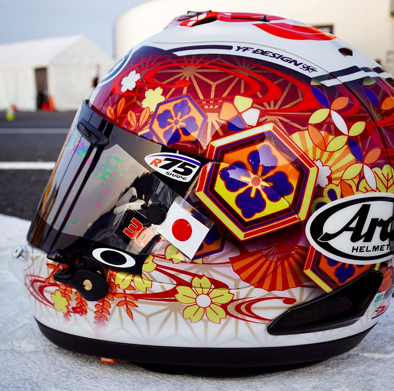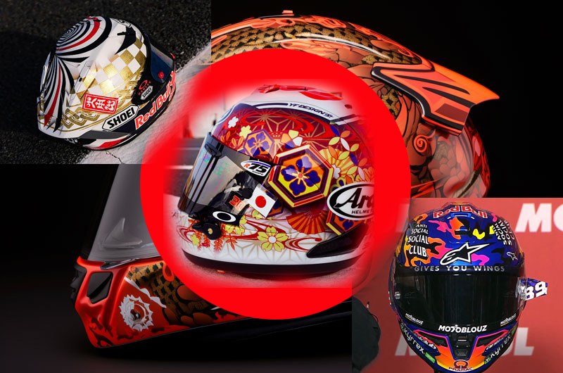 Le Japon, qui reçoit ce week-end le Grand Prix MotoGP sur le circuit de Motegi, engendre une véritable floraison de décorations spécifiques des casques de Marc Marquez, Takaaki Nakagami et Jorge Martin.