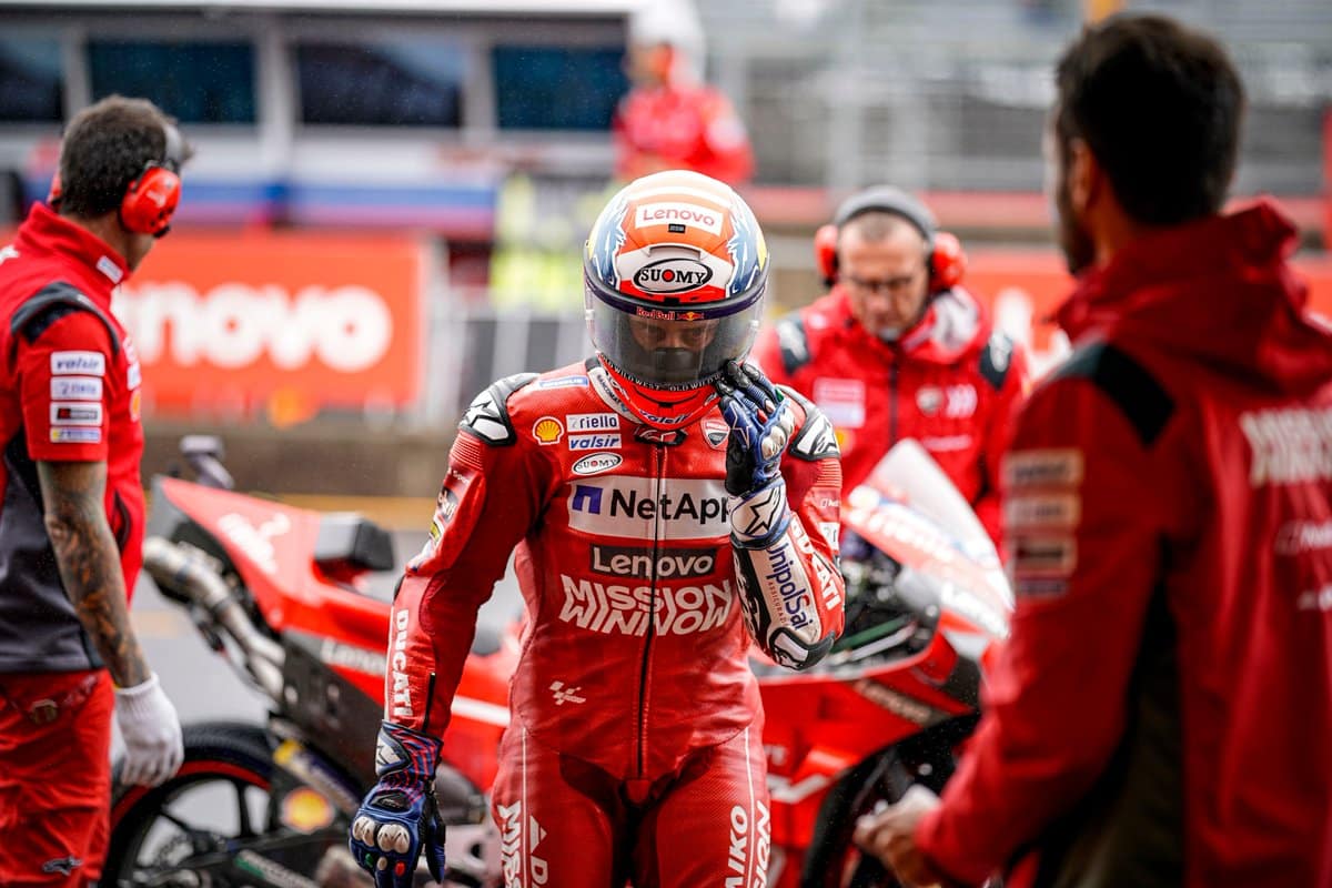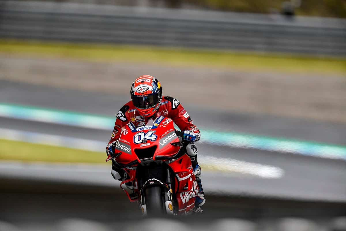 Après un vendredi encourageant mais sec, Andrea Dovizioso a traversé la tempête du samedi en se positionnant septième sur la grille de départ du Grand Prix du Japon… Qui devrait se dérouler par des conditions au moins aussi clémentes que lors du premier jour du meeting : « ma journée a été plutôt bonne. Je n’ai pas fait un très bon tour en qualifications car j’étais un peu trop lent dans les virages humides et j’ai perdu du temps », a commenté l’officiel Ducati à l’occasion de sa séance de qualifications au Japon. Avec un écart de 0,647 seconde sur le leader Marc Márquez, il termine à la 7ème place.