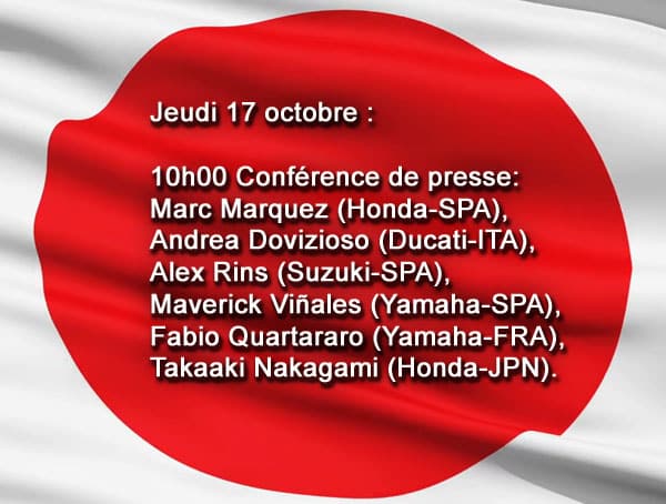Un Typhon Hagibis qui s’éloigne du Japon, un Marc Márquez qui va essayer de gagner toutes les courses d’ici à la fin de l’année maintenant que le titre mondial MotoGP lui a été attribué, un Fabio Quartararo de plus en plus pressant, un Johann Zarco en passe de remplacer Takaaki Nakagami qui va se faire opérer d’une blessure mystérieuse à l’issue de son Grand Prix national, voici déjà de quoi mettre son réveil ce week-end pour ne rien rater ds événements du Motegi…