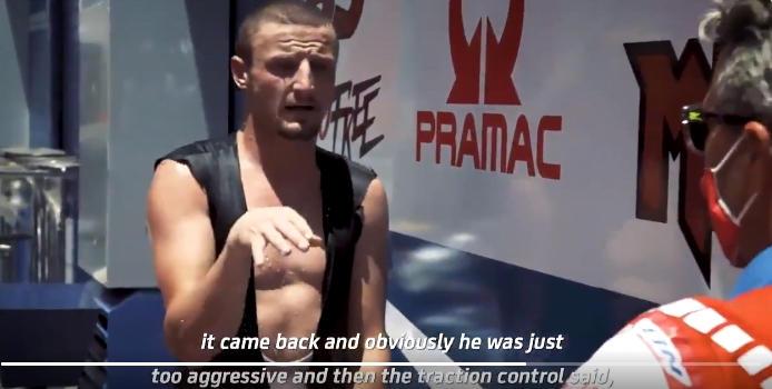 Une vidéo vaut parfois plus que tous les discours et celle qui fait le débriefing à peine descendu de la moto d’un Jack Miller quatrième et épuisé. Humble avec lui-même, l’Australien est transparent tant sur sa Ducati que sur ses adversaires. La GP20 avait de quoi gagner, et quant à Marc Marquez, apparemment, ce qui devait arriver, est arrivé…