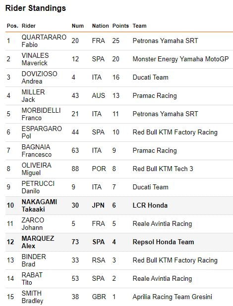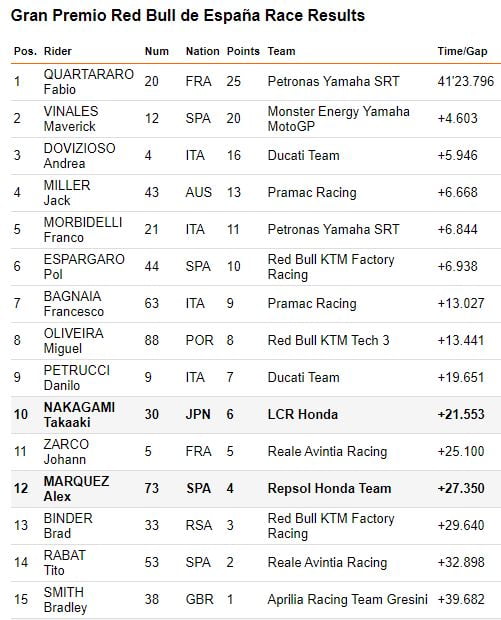 A l’arrivée du Grand Prix, Álex était satisfait de sa performance : « Ça a été une assez bonne première course, je pense que nous avons maintenant une bonne base pour travailler. »