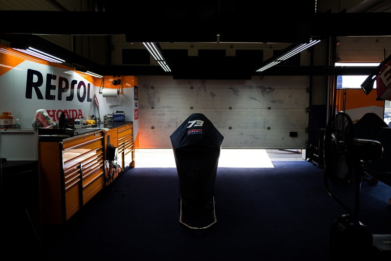 Incredible effort from @AlexMarquez73's team to set up @MarcMarquez93's garage again in just over an hour. pic.twitter.com/E9YJukYZVb