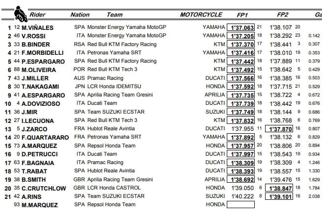MotoGP Jerez 2 J1 : chronos