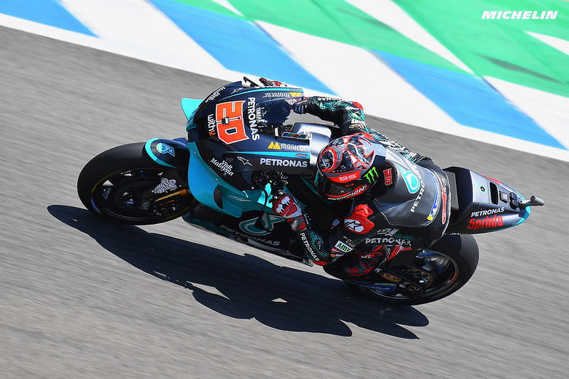 « Cela dépend. Nous verrons au premier tour. Nous devons être malins. Nous avons un très bon rythme mais nous devons faire attention car nous savons que l’adhérence est toujours vraiment étrange après les Moto2. Bien sûr, comme toujours, nous essaierons de faire de notre mieux mais nous avons vu la dernière fois que Maverick avait presque subi un highside au virage 8, ainsi que les chaleurs de Marc. Nous savons que les conditions de piste ne seront pas les mêmes qu’aujourd’hui donc nous devrons nous y adapter aussi vite que possible, mais au final nous sommes confiants car nous avons eu un bon rythme aujourd’hui. Donc oui, je suis impatient d’être sur la grille demain. »