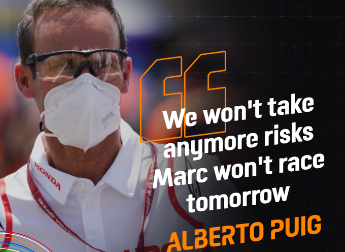 Alberto Puig confirma en el micrófono de DAZN que @marcmarquez93 NO participará en la carrera