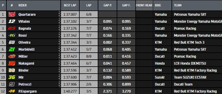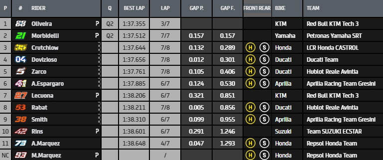Classement Q2 du Grand Prix d’Andalousie MotoGP :