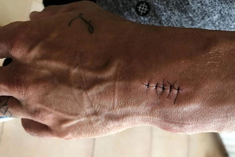 On rappellera que si le Japonais est un vaillant quatrième de ce second meeting de la saison, son équipier Cal Crutchlow est un non moins héroïque treizième, avec le poignet dans cet état… Les pilotes ont vraiment des êtres à part…