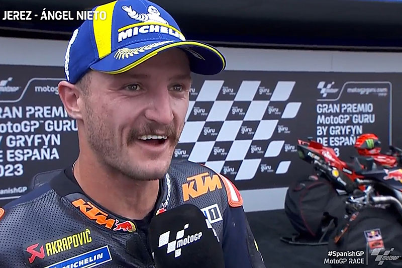 A peine descendu de sa KTM RC16 officielle après avoir terminé 3e du Grand Prix MotoGP d’Espagne sur le circuit de Jerez, Jack Miller s’est confié devant les caméras du site officiel MotoGP.com avec la joie d’avoir fait un bon choix en signant chez KTM…