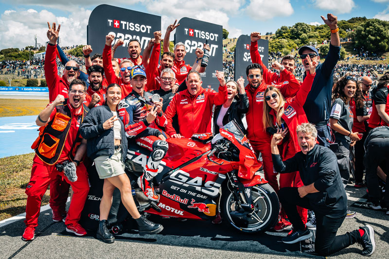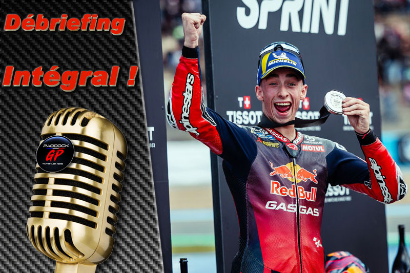 Pedro Acosta : « C’était dur ! C’était dur ! Je veux dire, pour un pilote, je pense que si c’est sec, ça va, si c’est mouillé, ça va, mais quand c’est mixte, c’est merdique, vous savez ! Mais c’était dur, c’était dur, parce que par exemple, dans les virages 8 et 9, vous pouviez voir les patchs d’humidité. Mais dans le cinquième virage, là il faut monter, et avec le soleil, on ne savait pas vraiment où étaient tous les patchs. Quand j’ai doublé Enea la première fois et qu’il m’a doublé là aussi parce que j’étais proche de la chute, je l’ai redoublé à nouveau dans le virage 6. J’attendais le virage 13 et j’ai touché à nouveau les patchs et je suis sorti large. C’était assez délicat, critique pour nous, de ne pas comprendre où étaient les patchs. Mais quoi qu’il en soit, c’était une bonne course après tout. Si nous prenons en compte le fait que nous avons été assez rapides dans les premiers tours, alors que normalement nous avons eu du mal, et si nous parlons aussi du départ, c’était très bien. »