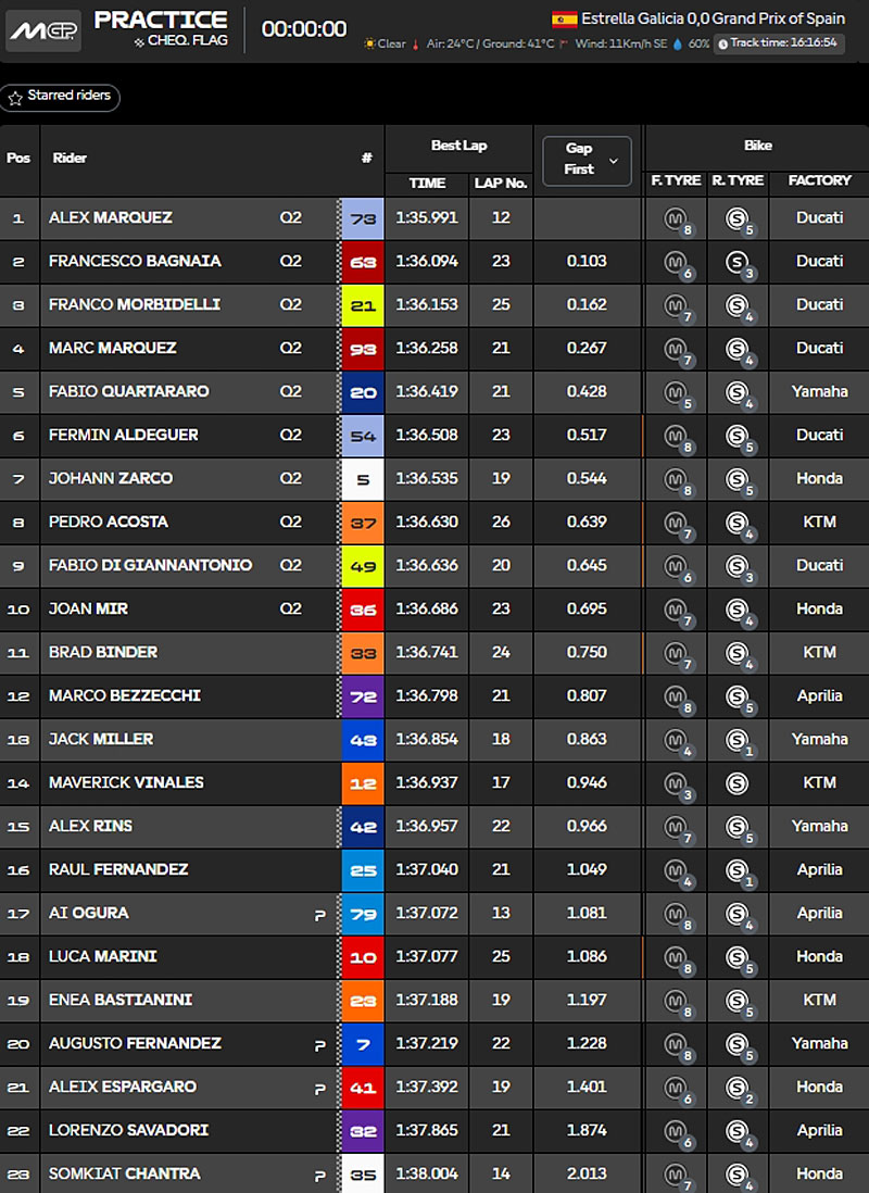 Résultat de la Practice au Grand Prix d’Espagne 2025 :
