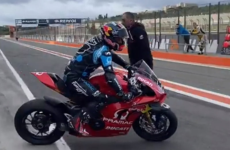 Il s’avère en fait que cette primauté n’était réelle que sur les réseaux sociaux puisque Johann Zarco, qui n’envisageait initialement de reprendre le guidon de sa Panigale V4R qu’à la fin du mois, tournait également sur le circuit Ricardo Tormo exactement au même moment. Égalité, donc, pour les deux pilotes MotoGP qui ont profité d’une séance de track days organisés par la structure allemande Bike Promotion.