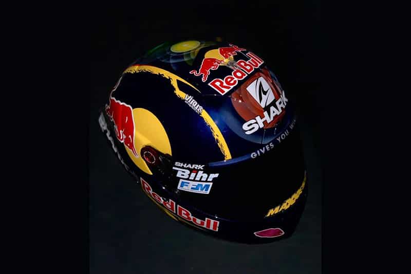 Le grand spécialiste en la matière est peut-être Valentino Rossi, qui nous gratifie souvent de versions spéciales pour les tests ou les Grands Prix en Italie, mais Johann Zarco est loin d’être en reste, avec de nombreux hommages à ceux qui l’ont aidé ou fait rêver (Gabor Talmacsi, Jean Alesi, Jacque Bolle, Jacky Hutteau, etc…), à tel point que nous en avions commencé la rétrospective sans toutefois pouvoir l’achever, faute de temps.