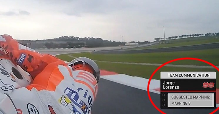 Commençons d’abord avec l’officiel Ducati. Dont le comportement mystérieux lors des derniers Grands Prix à l’égard de son équipier Dovizioso pour le titre mondial a laissé des traces. La preuve avec cette question d’un participant sur Twitter au sujet de la présence d’un « Mapping8 » sur le V4 de sa Ducati. Une référence à cette indication mentionnée sur son panneau du bord des stands qui doublait un message affiché sur son tableau de bord, en vue de laisser passer Dovizioso et que Por Fuera a superbement ignoré…