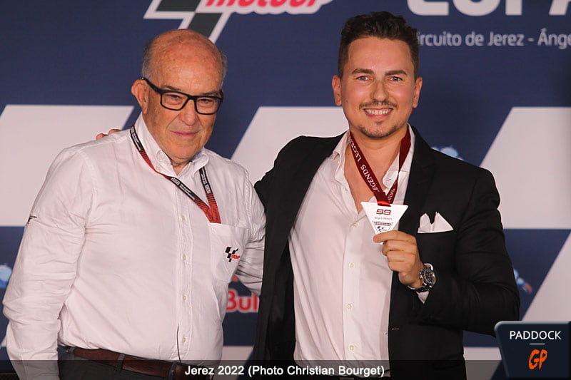 Ce jour à Jerez a été sans aucun doute spécial pour un Jorge Lorenzo très attaché à l‘étiquette. Ainsi, on se souviendra que, dans les scènes de caméra cachée, il se présente comme le quintuple Champion du Monde et il aime faire le distinguo entre ce titre et celui de bon pilote. Une différence dont il peut expliquer la subtilité à satiété. Mais il est maintenant encore mieux, soit une légende des Grands Prix officiellement intronisé dans ce Grand Prix d’Espagne. Cependant, on peut être avoir tous les titres de gloire et les plus mirifiques, on n’en est pas moins homme avec ses conflits familiaux. Un aspect de sa vie qui a été remarqué, signalé et expliqué lors de la remise du prix…