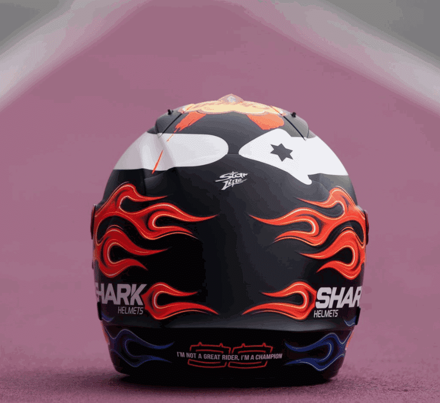 Ils se sont quittés officiellement bons amis avec plein de bons souvenirs. Mais il y a eu aussi des blessures. Entre Por Fuera et Ducati, il y a des non dits. Jorge Lorenzo n’a jamais manqué de confiance et maintenant, le Majorquin le revendiquera également sur son casque. Le nouveau pilote Honda, a présenté la livrée personnalisée de son casque 2019 : un casque « léché » par des flammes sur lequel on peut lire l’inscription : « je ne suis pas un grand pilote, je suis un champion « .
