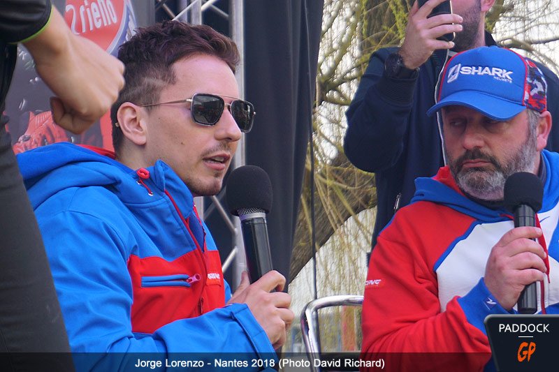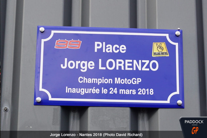 Une scène aux couleurs de l’équipementier avait ainsi été spécialement mise en place à l’extérieur et, dès son arrivée, Jorge Lorenzo a inauguré la place qui porte désormais son nom. Il s’agit d’une première pour le Village Motos qui en appelle d’autres, comme nous l’a confirmé son président Bertrand Macé : « A chaque fois qu’on aura un pilote de renom, pourquoi pas commencer à nommer les rues car on est dans un village. »