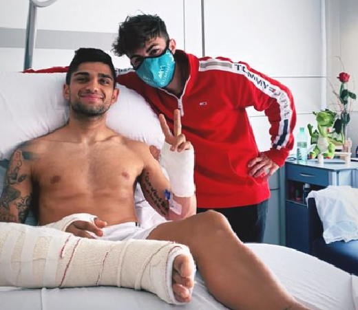 « Les os cassés ? Trois dans la main droite, un doigt de la main gauche, deux dans le genou et deux dans le pied. Il y aura trois opérations. Ils vont intervenir sur le scaphoïde, sur la plaque tibiale du genou et aussi sur la malléole tibiale de la cheville, pour renforcer la pointe d’une ancienne fracture mal soudée ».