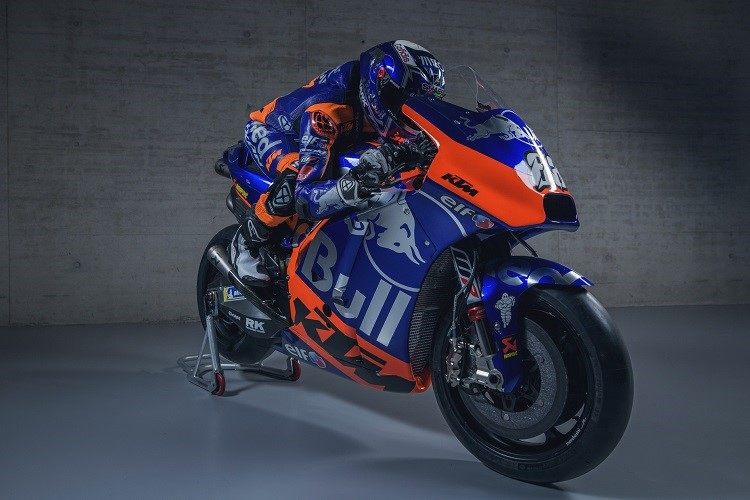 Jusqu’à présent, le design bleu des machines KTM RC16 et Tech3 Moto2 de Marco Bezzechi et Philipp Öttl a été gardé secret. Lors de la présentation de l’équipe, le secret de la conception a finalement été révélé. Le bleu est différent de celui de l’équipe de Formule 1 de Toro Rosso. Il est dérivé de la canette bleue-argentée Red Bull. Il est désigné par le groupe Energy Drink comme « Bleu électrique ».