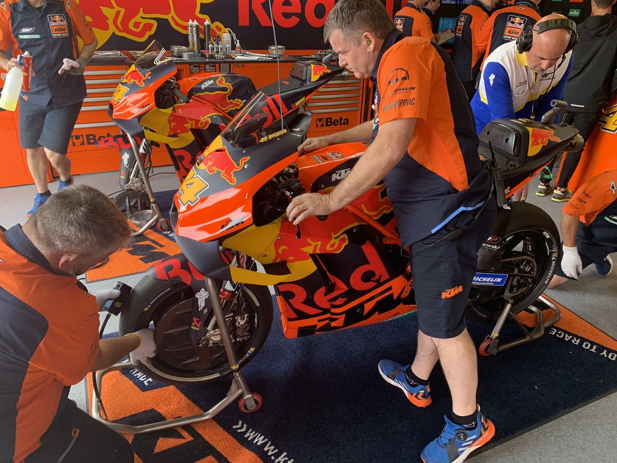 Un positionnement qu’a notamment rappelé Bradley Smith, ancien pilote officiel KTM et à présent pilote test Aprilia. Une puissance de feu qu’a aussi révélé Hervé Poncharal lorsqu’il a découvert le département compétition de la marque de Mattighofen. Les Autrichiens ont les moyens d’arriver à leurs fins.