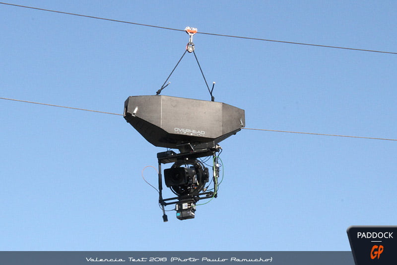 Après les « simples » caméras embarquées, puis les caméras gyroscopiques et les caméras à 360° sur les motos, une caméra accrochée à un câble de 150 mètres de long a fait son apparition à environ 6 mètres de haut au-dessus du muret des panneauteurs, pouvant ainsi couvrir la totalité de la pit-lane.