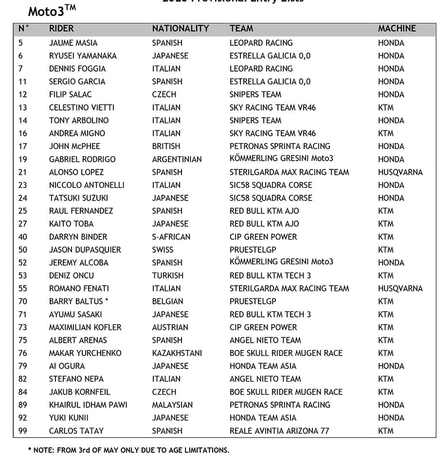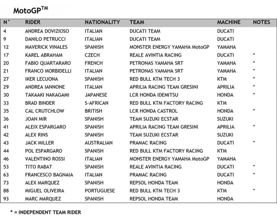 Avec l’officialisation d’Álex Márquez aux côtés de frère Marc chez Repsol Honda en MotoGP, une mise à jour des engagés en Grand Prix en vue de la saison 2020 a été publiée. Pour le moment, la montée du Champion du Monde Moto2 parmi l’élite est la seule sensation. Et il manque toujours un nom : celui de Johann Zarco.