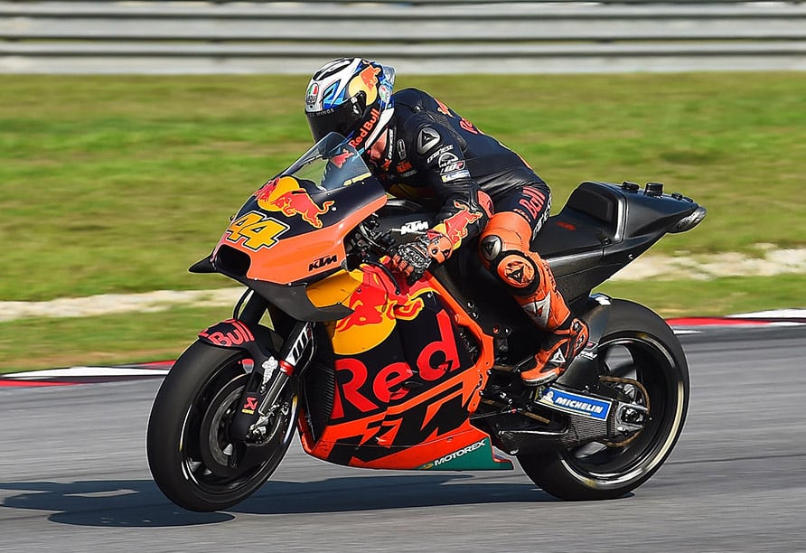 KTM a apporté de nombreuses mises à jour lors du test de Sepang, concernant les quatre pilotes et le pilote d’essai Mika Kallio, déjà présents lors du shakedown. Un nouveau châssis, un nouvel ensemble aérodynamique, de nouvelles suspensions WP, et des tés de fourche. Un excellent travail en électronique pour éviter le wheelie de la RC16. Le travail sur le moteur et l’équilibre est également important pour donner plus d’adhérence et une meilleure sensation avec l’avant. Au cours de la dernière saison, la moto autrichienne a surtout péché en termes d’aérodynamique. À partir de cette année, rien ne sera laissé au hasard. Le rookie Miguel Oliveira a clairement expliqué à quel point la KTM RC16 était trop raide à l’avant, nécessitant une meilleure sensation lors qu’elle est à la limite dans les virages. Une évaluation partagée à la fois par les pilotes officiels et les pilotes satellites.