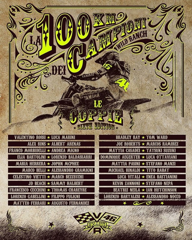 A l’occasion des traditionnels « 100 km dei Campioni » hivernaux organisés sur le circuit d’entraînement de Rossi, le célèbre Motor VR46 Ranch situé près de son domicile de Tavullia, Valentino s’est imposé avec son demi-frère Luca Marini. Ils ont remporté la sixième édition de l’épreuve devant Andrea Migno et Franco Morbidelli, alors que la troisième place est revenue aux Américains JD Beach et Sammy Halbert.