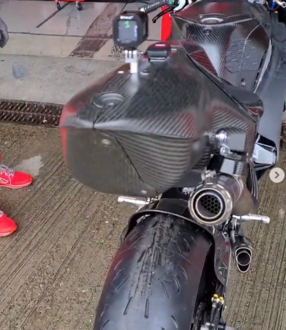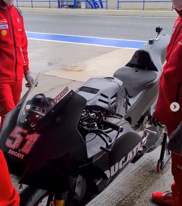 Le réseau social n’a pas manqué de repérer la dernière née des Desmosedici qui roulera à Jerez demain et le surlendemain. Du moins on l’espère car au vu des photos, c’est encore humide … Reste que l’ensemble des pilotes Ducati vont se retrouver sur le tracé espagnol pour faire des tours en Panigale V4S et même de WSBK pour ceux qui y sont engagés.