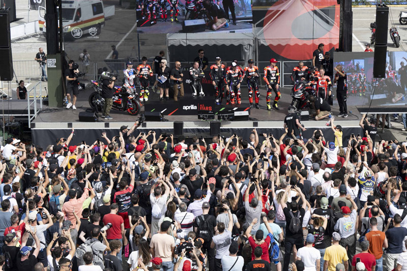Ces pilotes extraordinaires démontreront leurs compétences sur la piste et, aux côtés des grands champions de l’histoire d’Aprilia, menés par Max Biaggi, ils seront également sous les feux de la rampe dans le paddock : dans la plus pure tradition Aprilia All Stars, ils se joindront à des milliers de fans pour célébrer Aprilia, le constructeur européen qui a remporté le plus grand nombre de victoires dans le championnat du monde de motocyclisme, un total de 298 victoires en GP.