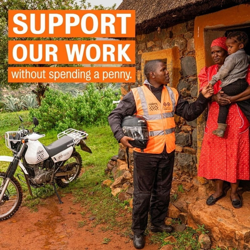 L’association caritative Two Wheels for Life forme à la pratique de la moto des infirmiers africains et des coursiers chargés de transporter des médicaments et du petit matériel, ainsi que des mécaniciens. Elle fournit également des petites cylindrées, avec le nécessaire pour l’entretien et des pièces de rechange, ainsi que l’équipement du conducteur. Cette association existe depuis plus de trente ans et a déjà aidé à soulager beaucoup de douleurs sur le continent africain.