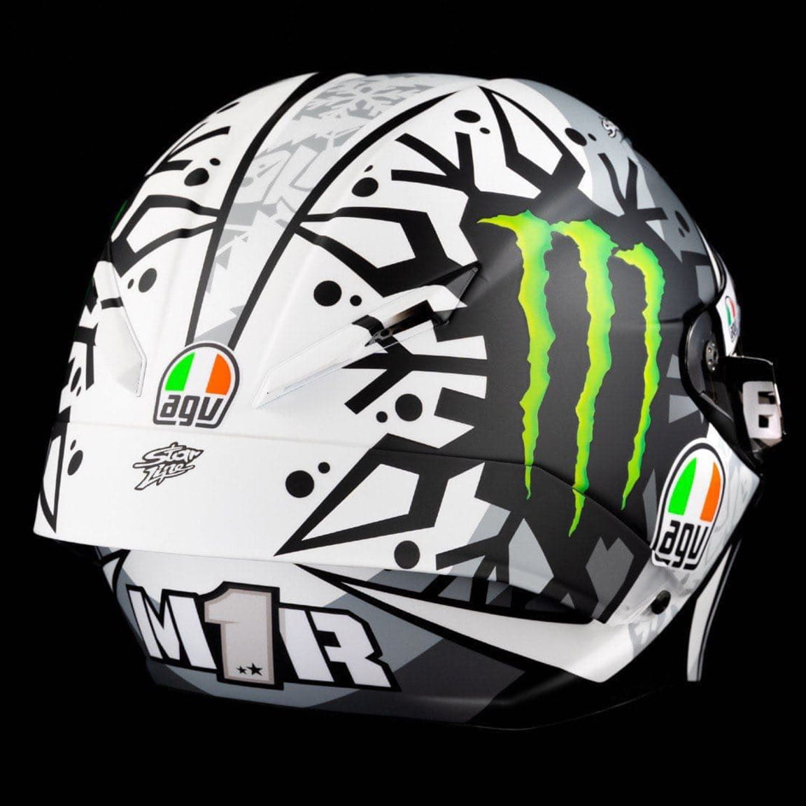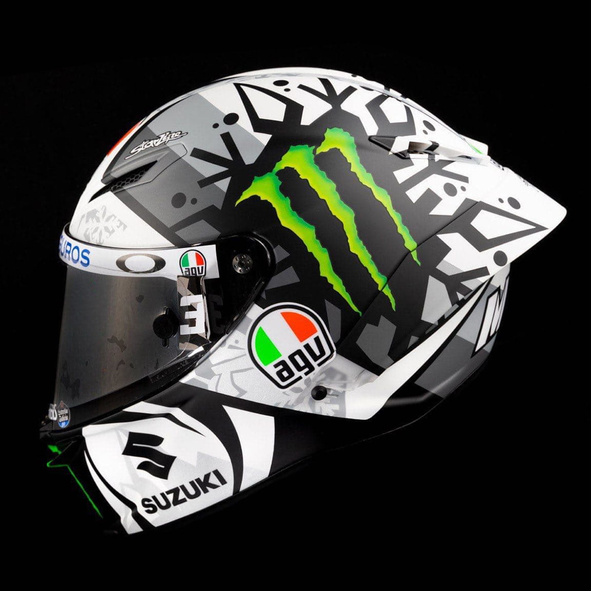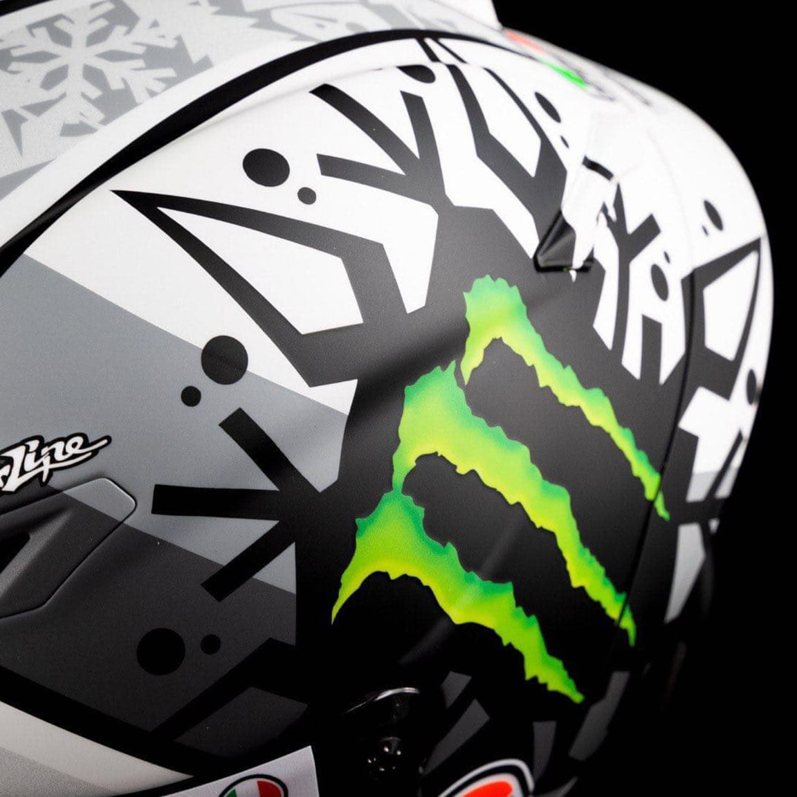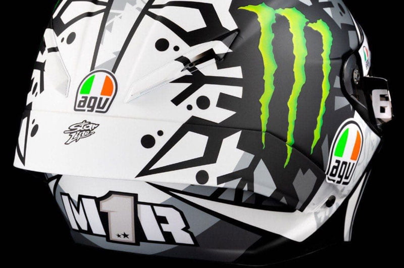 On retrouve celui-ci à la fois sur sa moto sur le casque AGV Pista GP RR Winter Test qu’il inaugure lors des premiers essais hivernaux au Qatar.