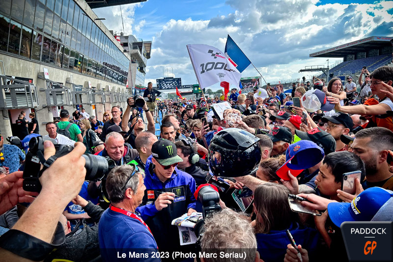 Carmelo Ezpeleta, PDG de Dorna Sports : « Tout au long du weekend, l’atmosphère ici au Mans a été incroyable, nous savions donc que l’affluence serait élevée. Mais battre le record de tous les temps et voir qu’il y a plus d’un quart de million de personnes, c’est quelque chose de vraiment spécial. Nous aimerions remercier PHA Claude Michy pour l’incroyable événement qu’ils organisent chaque année au Mans, qui est vraiment l’un des points forts du calendrier, et mon dernier mot, bien sûr, va à nos fans. Merci à tous pour votre passion et votre amour de ce sport. Vous avez fait de cette journée une journée historique pour le MotoGP et pour le 1 000è Grand Prix FIM ! »