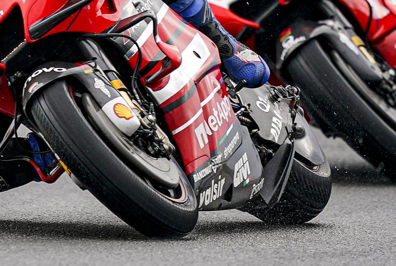 Cependant, Andrea Dovizioso semble déclarer s’être trompé de choix de pneus : « A la fin, nous avons peut-être payé pour un mauvais choix de pneus. J’ai roulé avec des pneus tendres à l’avant et à l’arrière, et dans les derniers tours, je ne pouvais pas faire tourner la moto correctement. A la fin, je n’avais plus aucune adhérence. J’étais à la limite avec le pneu avant et j’ai failli tomber dix fois. Dans ces conditions, il est toujours difficile de faire le bon choix de pneus, car on ne sait jamais si la piste restera complètement mouillée ou si elle commencera à sécher à la fin. Mais il est toujours facile d’en parler après. »