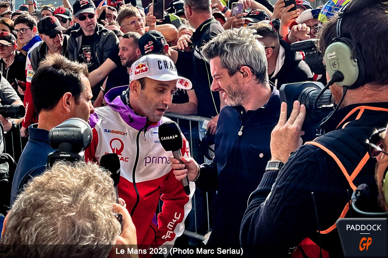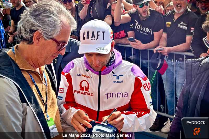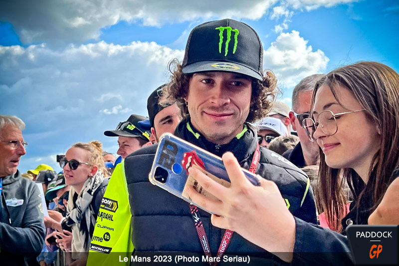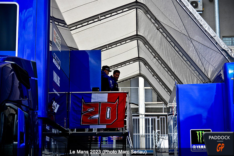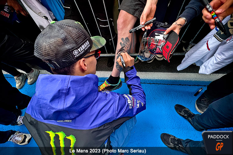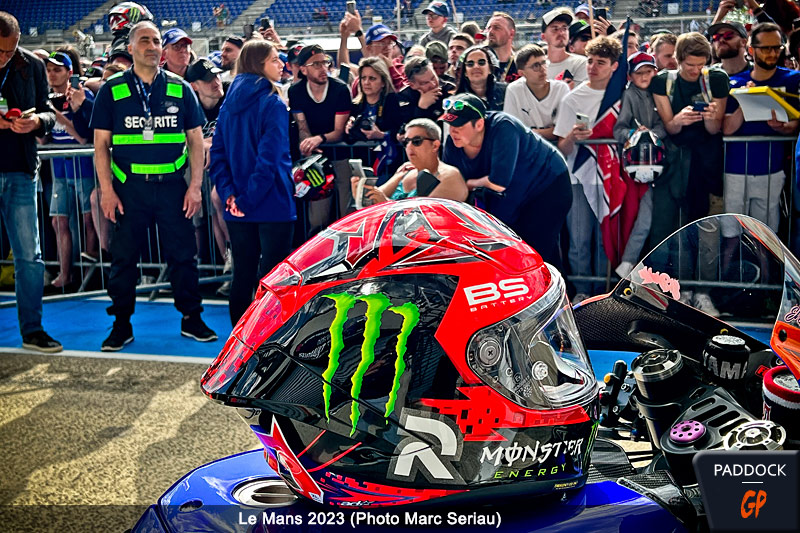 Après la mise en place et le calme du matin pour le Grand Prix de France MotoGP au Mans, la frénésie s’est emparée de la voie des stands du circuit Bugatti vers 17 heures, quand un public, tout à fait considérable, s’est massé devant les boxes, en particulier ceux de Fabio Quartararo et Johann Zarco.
