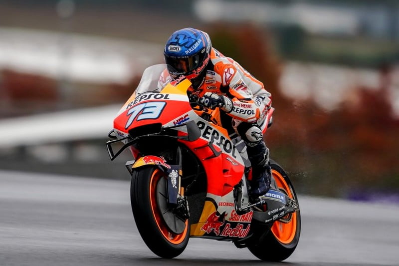 Lors des FP1 le plateau a roulé en pneus pluie et Márquez s’est montré très satisfait des gommes proposées. « Les pneus sont vraiment différents de ceux de Moto2 et le pneu pluie Michelin apporte beaucoup de confiance », a-t-il expliqué. « Normalement je suis assez rapide sur le mouillé et je suis content de me sentir bien. »