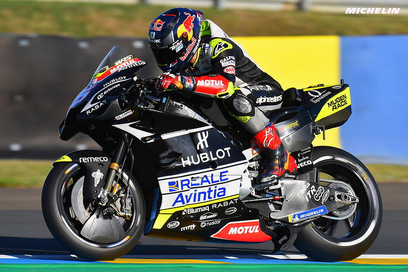 « Heureusement, on a eu un peu de pluie lors de la première séance d’essais, donc cela a aidé à économiser quelques pneus. Si nous avions eu des températures un peu plus hautes, l’allocation aurait été bonne, mais comme cette saison est un peu particulière, nous rencontrons un peu plus de problèmes et nous essayons d’anticiper pour Aragon et Valencia. Ou vous demandez à Michelin de fournir deux jeux supplémentaires de pneus tendres, car on sait déjà que lors des prochaines courses on utilisera également uniquement les pneus tendres, car au moins à l’avant, il y a des virages, comme le deuxième virage à Aragón, qui peut être très délicat, ou alors il faut avoir des bi-gommes comme ils faisaient avant. Maintenant, ils ont trouvé de la constance avec l’avant et ils font un pneu avant normal, pas un bi-gomme. Mais clairement, avec cette saison spéciale, nous demandons soit des bi-gommes, soit plus de pneus tendres. »
