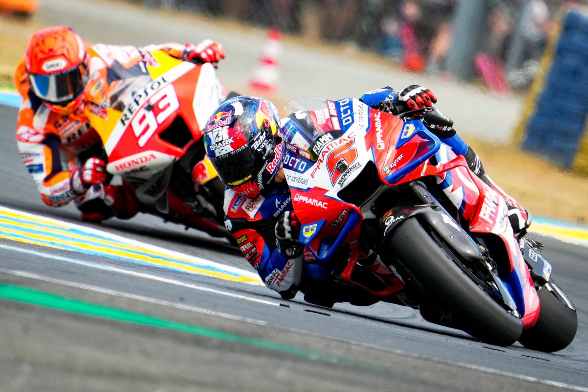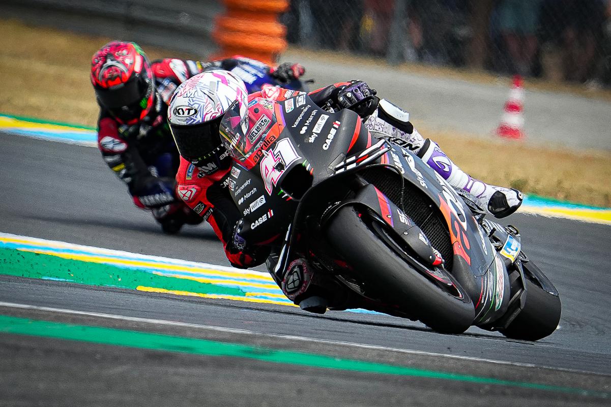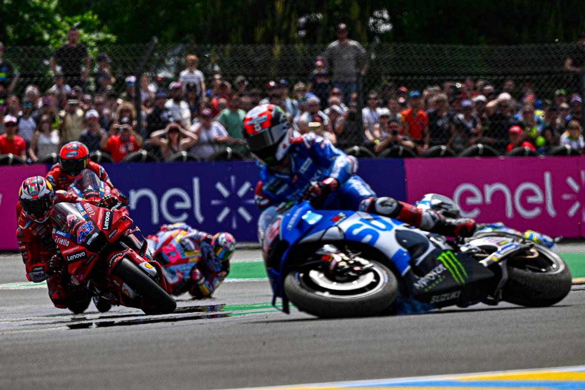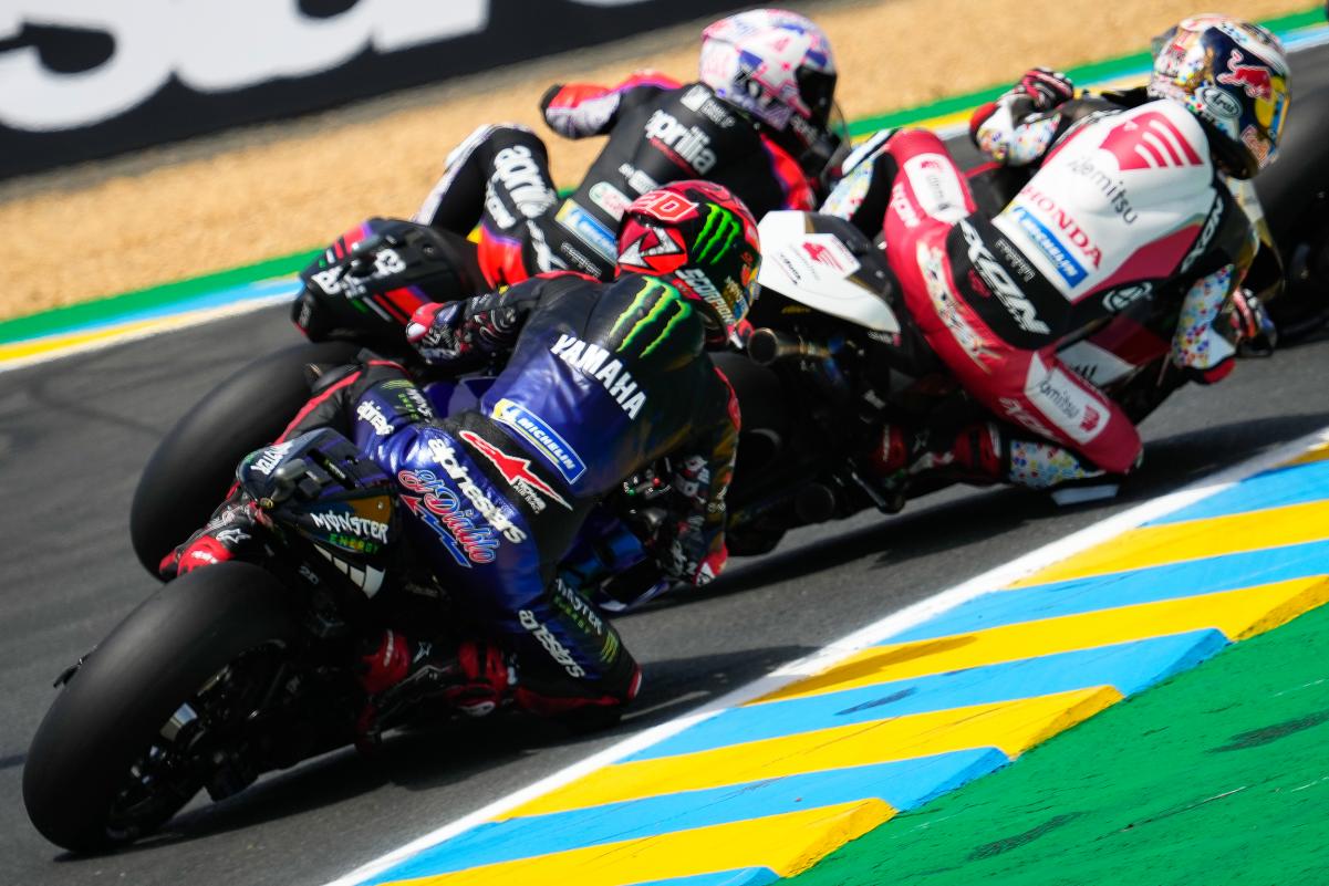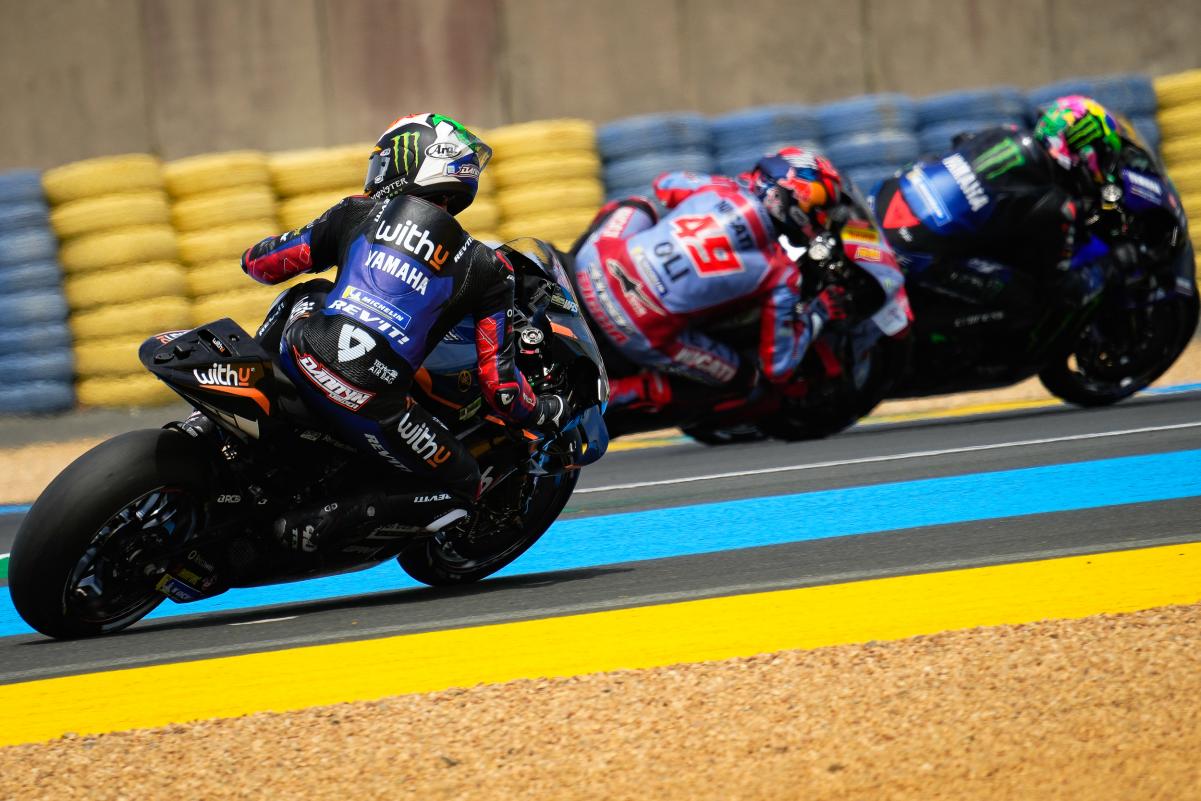 Fabio Quartararo a limité la casse dans un Grand Prix de France qu’il espérait faire sien sur un tracé du Bugatti au Mans indulgent avec les faiblesses bien réelles de sa Yamaha M1. Mais même dans la Sarthe, impossible peut-être français avec une moto venue d’Iwata. Quand à Johann Zarco, il était satisfait à l’issue du Grand Prix de France qu’il a conclu en 5e position après s’être payé le luxe de doubler Marc Márquez en course. Bien sûr, l’idéal aurait été de monter sur le podium, comme il l’avait fait l’année dernière derrière Jack Miller et devant Fabio Quartararo, mais en partant 9e sur la grille à cause d’une pénalité et en ayant une fois de plus fait un départ moyen, le pilote Pramac quitte la Sarthe avec la satisfaction du devoir accompli en effaçant la chute survenue à Jerez. Les photos mises à disposition de la presse par le site officiel MotoGP.com nous permettent de revivre ce Grand Prix de France !