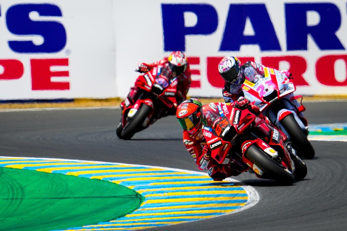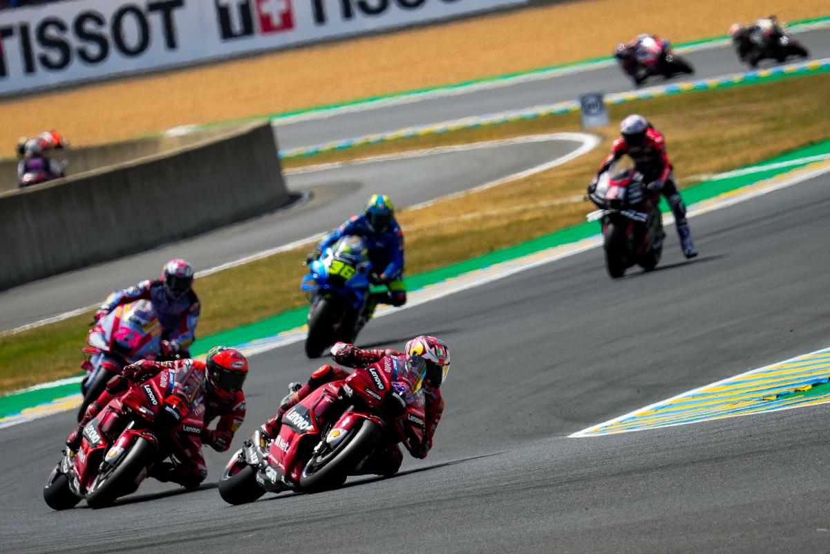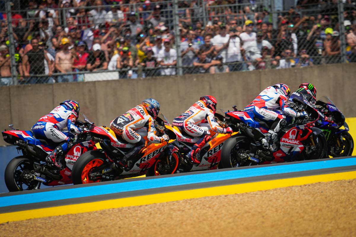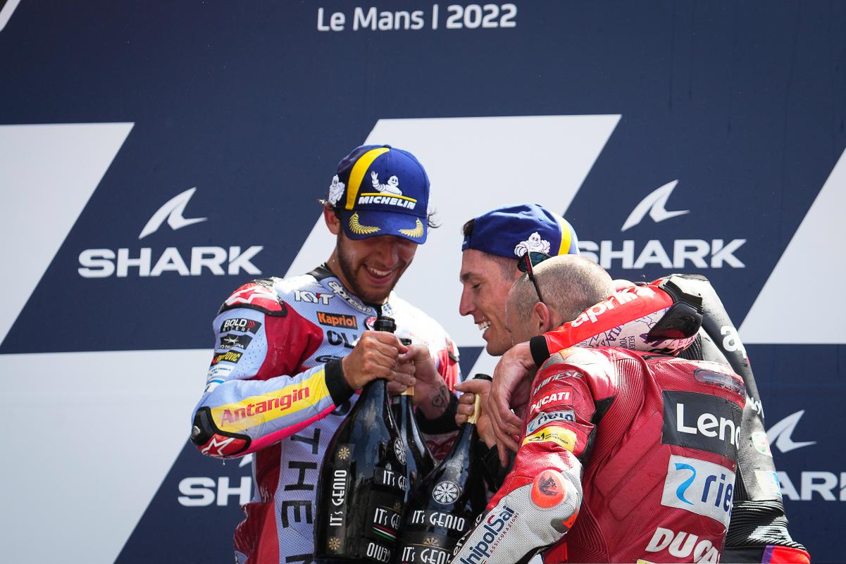 Fabio Quartararo a limité la casse dans un Grand Prix de France qu’il espérait faire sien sur un tracé du Bugatti au Mans indulgent avec les faiblesses bien réelles de sa Yamaha M1. Mais même dans la Sarthe, impossible peut-être français avec une moto venue d’Iwata. Quand à Johann Zarco, il était satisfait à l’issue du Grand Prix de France qu’il a conclu en 5e position après s’être payé le luxe de doubler Marc Márquez en course. Bien sûr, l’idéal aurait été de monter sur le podium, comme il l’avait fait l’année dernière derrière Jack Miller et devant Fabio Quartararo, mais en partant 9e sur la grille à cause d’une pénalité et en ayant une fois de plus fait un départ moyen, le pilote Pramac quitte la Sarthe avec la satisfaction du devoir accompli en effaçant la chute survenue à Jerez. Les photos mises à disposition de la presse par le site officiel MotoGP.com nous permettent de revivre ce Grand Prix de France !