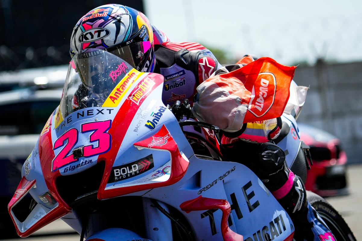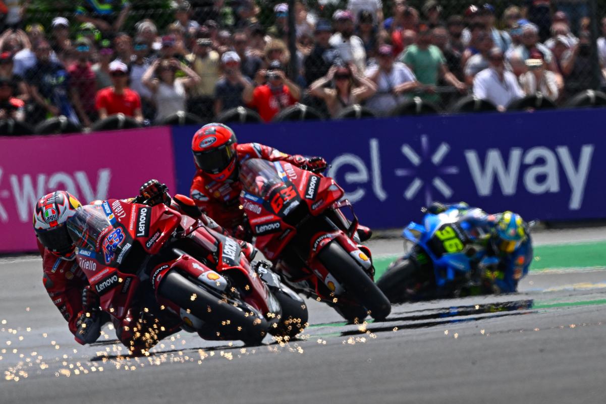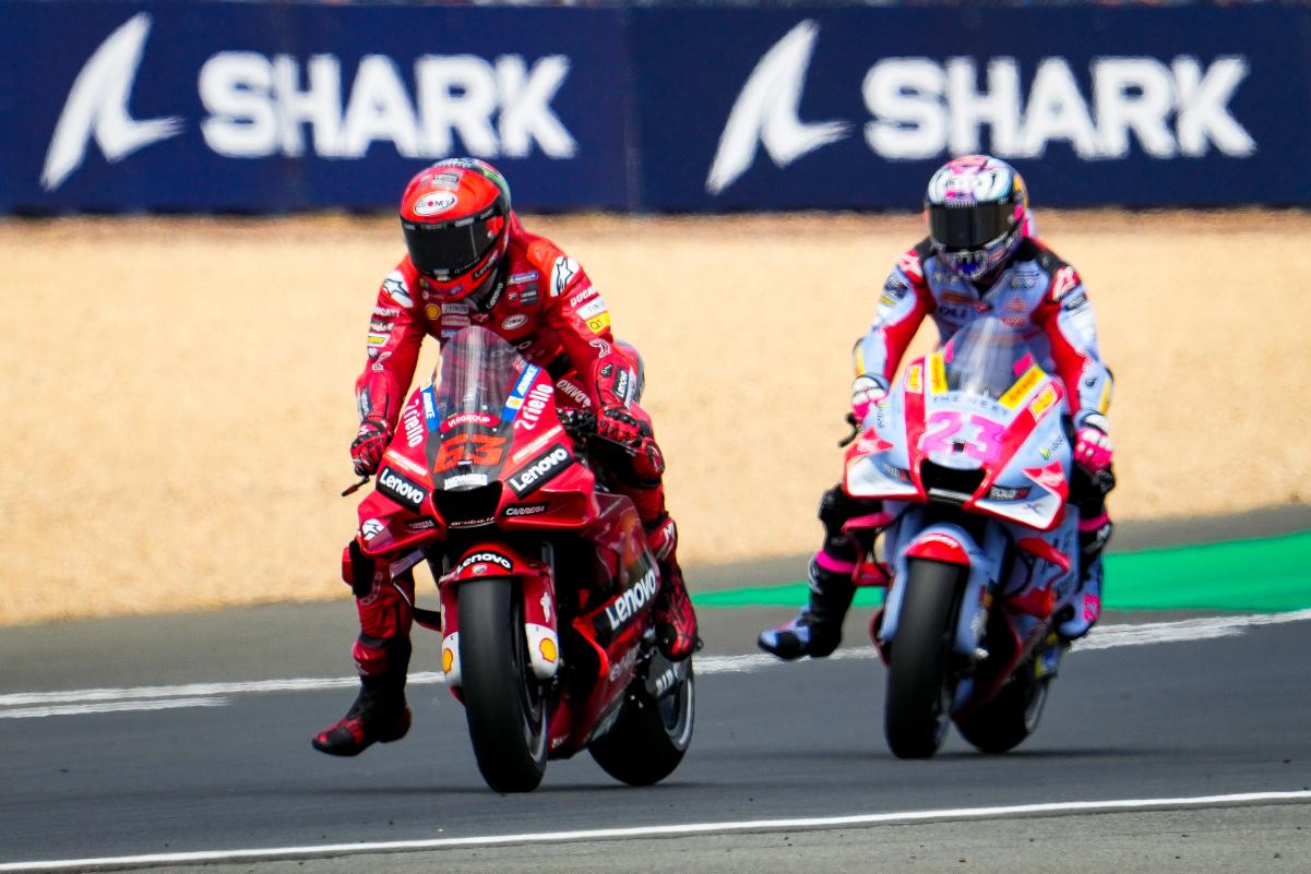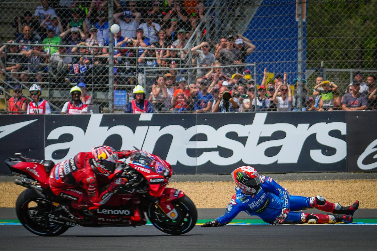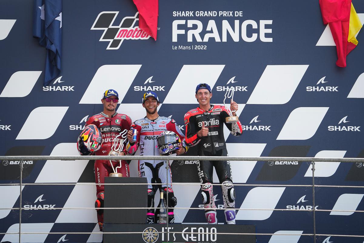 Fabio Quartararo a limité la casse dans un Grand Prix de France qu’il espérait faire sien sur un tracé du Bugatti au Mans indulgent avec les faiblesses bien réelles de sa Yamaha M1. Mais même dans la Sarthe, impossible peut-être français avec une moto venue d’Iwata. Quand à Johann Zarco, il était satisfait à l’issue du Grand Prix de France qu’il a conclu en 5e position après s’être payé le luxe de doubler Marc Márquez en course. Bien sûr, l’idéal aurait été de monter sur le podium, comme il l’avait fait l’année dernière derrière Jack Miller et devant Fabio Quartararo, mais en partant 9e sur la grille à cause d’une pénalité et en ayant une fois de plus fait un départ moyen, le pilote Pramac quitte la Sarthe avec la satisfaction du devoir accompli en effaçant la chute survenue à Jerez. Les photos mises à disposition de la presse par le site officiel MotoGP.com nous permettent de revivre ce Grand Prix de France !