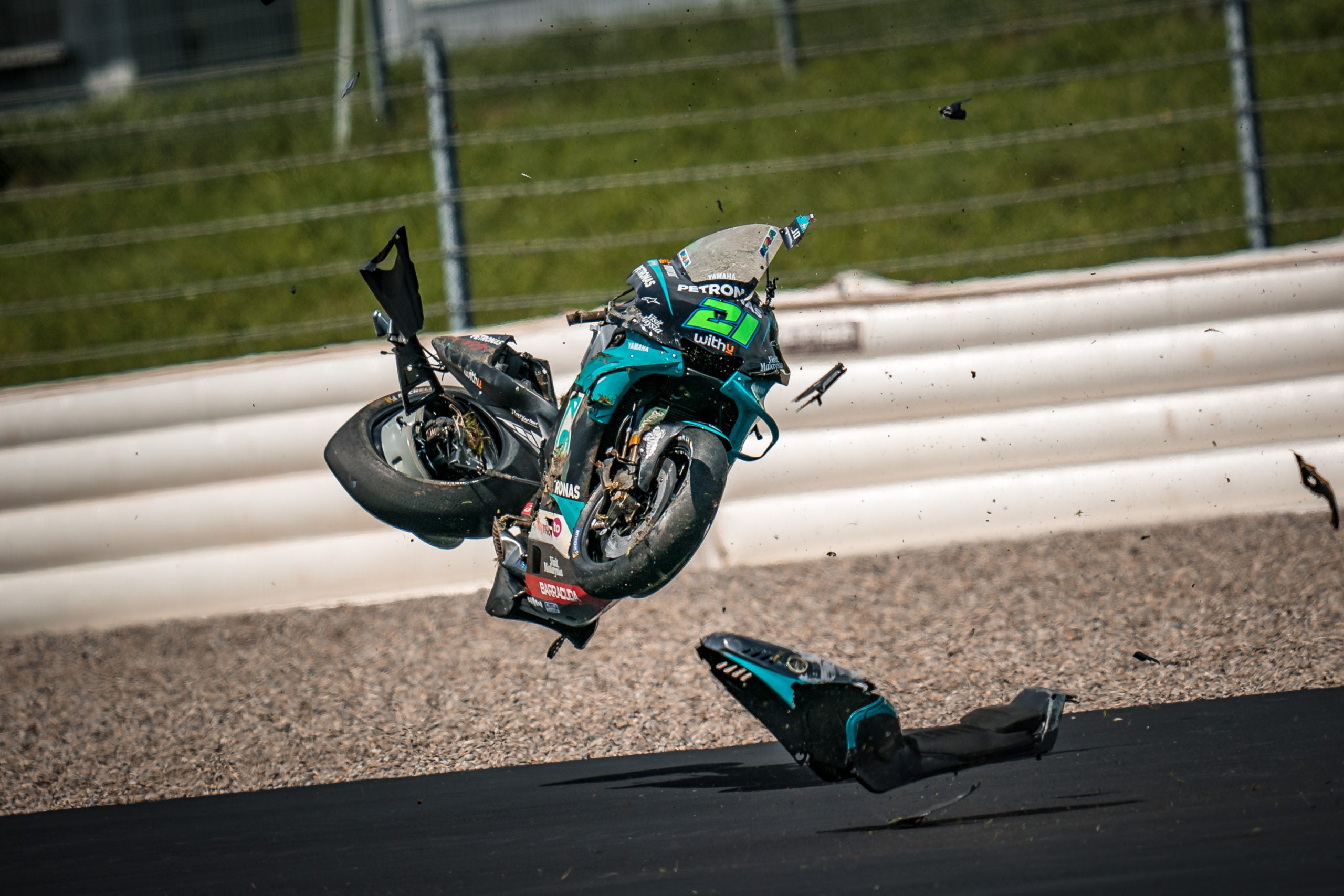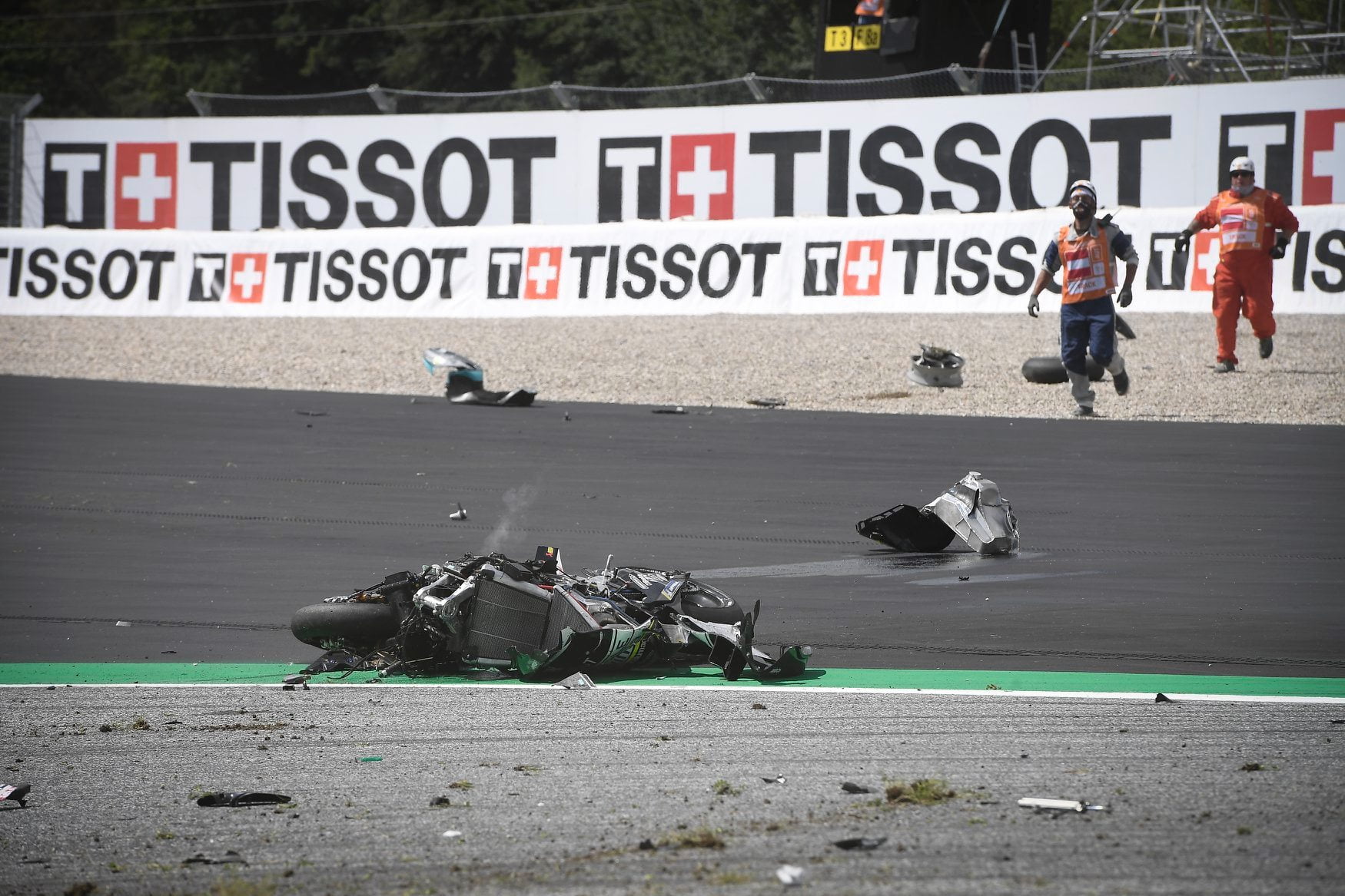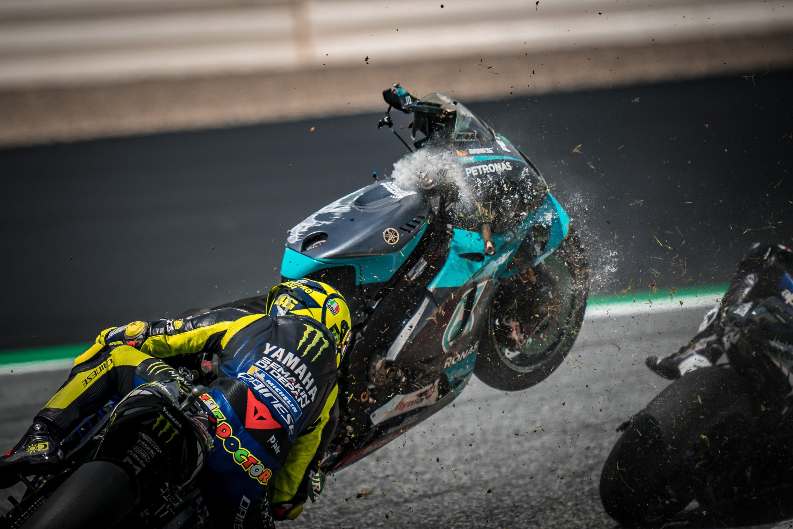 Leurs motos, cependant, ont eu moins de chance. La GP19 de Zarco a été brisée en deux morceaux répartis sur toute la piste. La Yamaha de Morbidelli ne s’en sortait guère mieux, il ne restait plus qu’une épave.