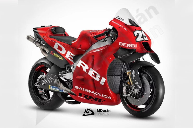 Le Groupe Pierer Mobility aligne bien des KTM, Husqvarna et GASGAS, alors pourquoi Piaggio n’alignerait pas des Derbi dans son équipe satellite qui viendrait seconder, avec Miguel Oliveira et Raúl Fernández, les Aprilia RS-GP officielles d’Aleix Espargaró et Maverick Viñales en 2023 ?