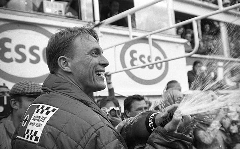 A l’arrivée, pour la première fois de l’histoire, Dan Gurney arrose tout le monde de champagne. Il explique : « J’étais tellement excité que lorsqu’ils m’ont remis le Magnum de Moët et Chandon, j’ai secoué la bouteille et j’ai commencé à arroser les photographes, les pilotes, Henry Ford II, Carroll Shelby et leurs femmes. C’était un moment très spécial à l’époque, je ne savais pas que j’avais inauguré une tradition qui se perpétue encore aujourd’hui dans le cercle des vainqueurs du monde entier ».