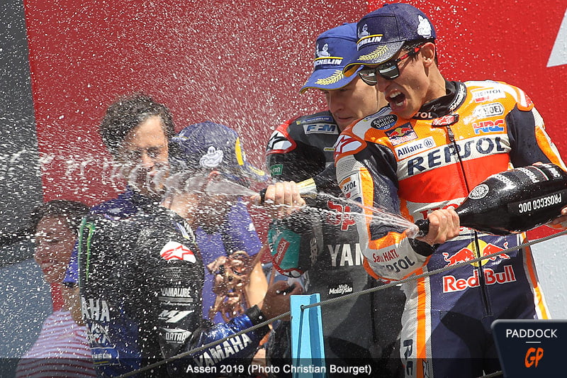 C’est du moins l’image gravée dans les esprits, alors qu’en MotoGP, pas la moindre goutte du célèbre breuvage français ne vient éclabousser les membres des teams et les journalistes massés sous le podium…