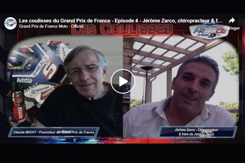 Entourage proche des pilotes français Johann Zarco et Fabio Quartararo, speaker, commissaire de piste, médecin chef du circuit du Mans, techniciens casque et/ou pneumatique, …, un certain nombre de personnes œuvrant dans les coulisses du Grand Prix de France s’exprimeront dans des interviews d’environ 8/10 minutes menées par le promoteur du Grand Prix lui-même.