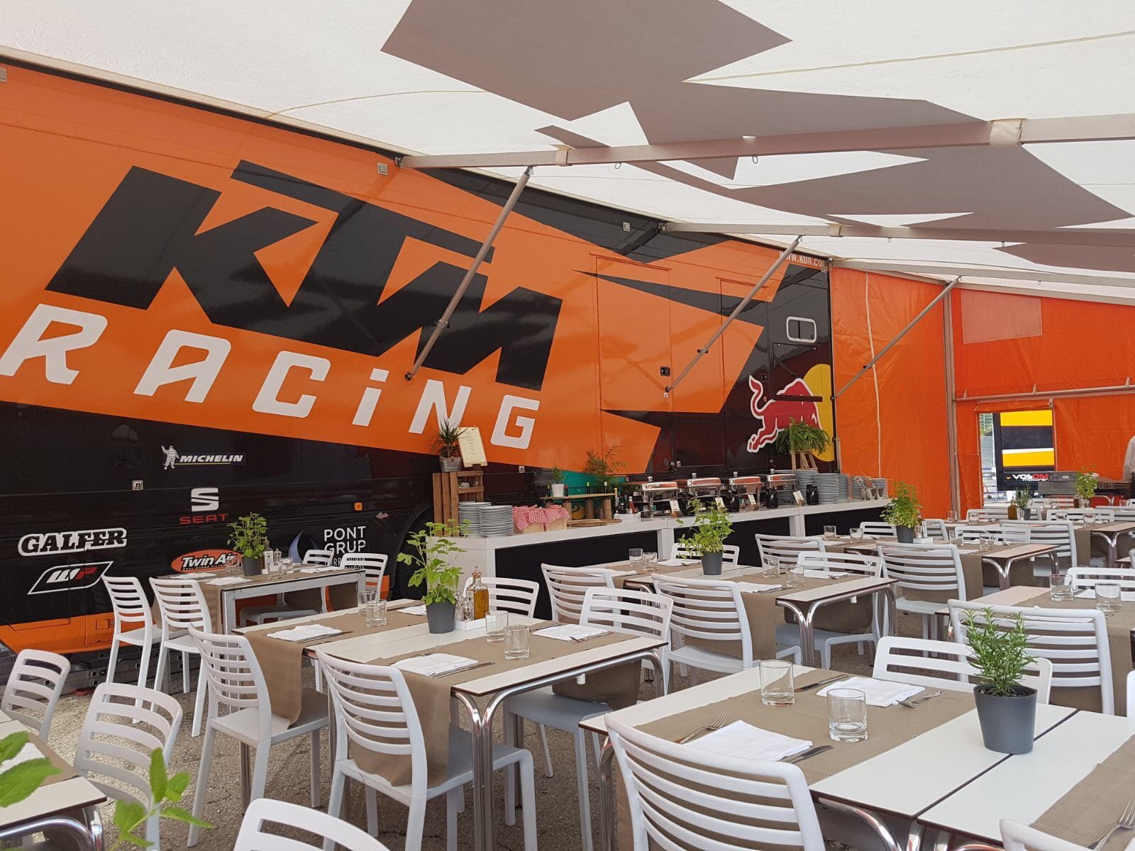 Autour des tables de l’Hospitality, journalistes, invités, membres de l’équipe, représentants de la marque ou simplement famille et amis des pilotes se retrouvent pendant une année entière. Pour tout le monde, il y a toujours un endroit pour se détendre, se ressourcer et se rafraîchir, ce qui est bien nécessaire pendant les longues journées de travail de plus de 12 heures pour les équipes techniques.