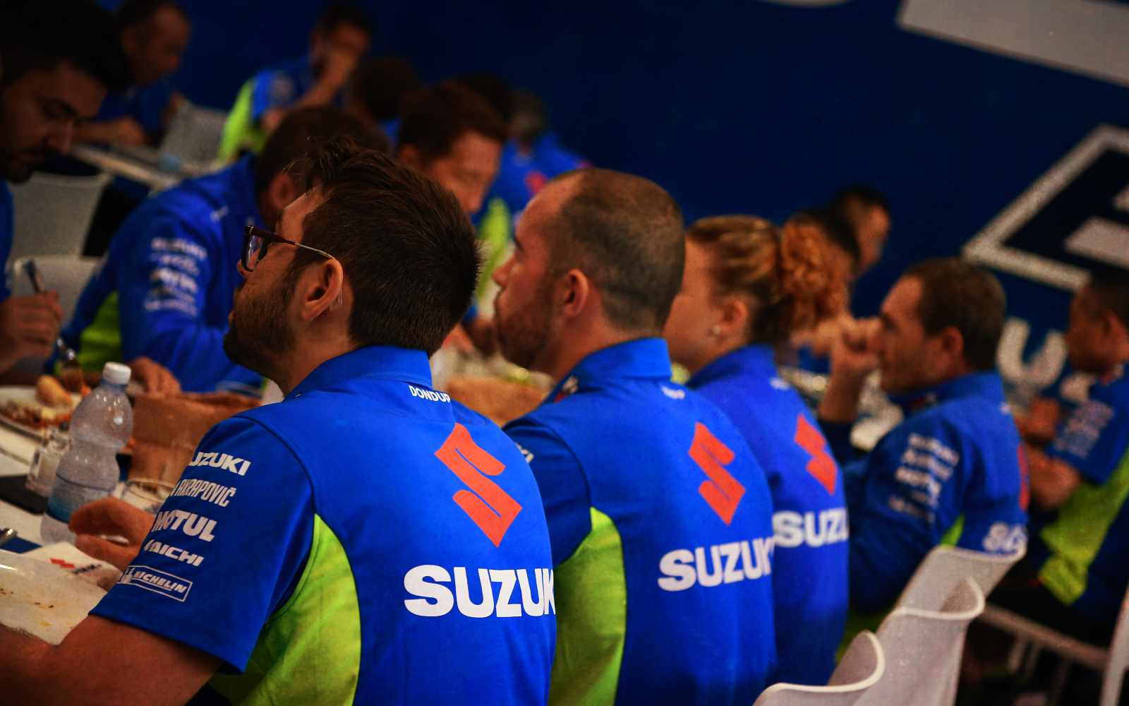 Le travail ne commence pas en cuisine, mais tous les mardis avant un Grand Prix. Religieusement, les cuisiniers et autres membres de l’hospitalité s’efforcent de nettoyer et de préparer la cuisine et la salle de réception. Ce même jour, tous les aliments et ingrédients nécessaires pour tout le week-end sont achetés. Et les quantités sont astronomiques : en effet, chaque année, des teams comme SUZUKI ECSTAR consomment environ 1000 kilos de pâtes, 3000 kilos de fruits et légumes, environ 2000 œufs, 1500 kilos de viande, etc. Et après le dessert, environ 9000 tasses de café italien !