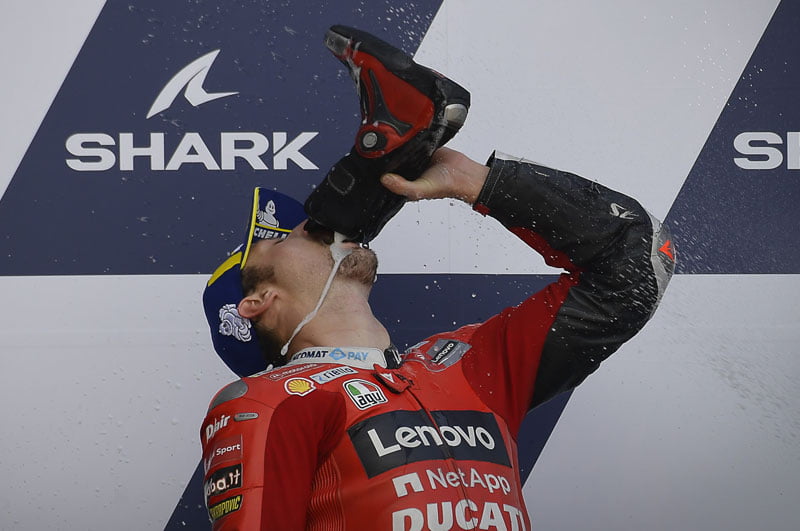 J’avais un bon rythme tout le weekend, quel que soit le temps qu’il faisait (et il en a fait beaucoup), donc je voulais juste prendre l’avantage dès le départ, et ensuite gérer les choses même si quelqu’un passait devant, juste le suivre et voir comment le rythme évoluait. C’est ce que j’ai fait et tout s’est passé comme prévu… et puis la pluie est arrivée au bout de quatre tours ! Quand il a commencé à pleuvoir, (Fabio) Quartararo et moi avons coupé, et c’est à ce moment-là que j’ai failli perdre la course, alors j’ai visé les graviers du virage 11, car je pensais qu’il y aurait de l’adhérence ! C’était assez effrayant.