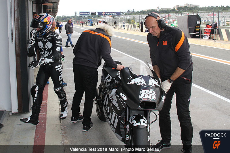 Je pense aussi que pour le moment, on travaille plutôt sur les références de Pol (Espargaro) qui a un style très très particulier. Par contre, ça c’est plutôt un avantage pour nous parce qu’on le connaît bien, et on connaît ses particularités. Il a besoin d’une moto agressive, qui bouge, qui patine : c’est ce qu’il veut. Sur la Yamaha, il n’avait pas ça et il voulait ça, donc on avait artificiellement créé une moto un peu agressive. Forcément, cette base là ne va pas convenir au pilote qu’on a, donc on a déjà commencé à faire autrement. Et pour le moment, dans la gamme de réglages de la moto, il y a largement de quoi aller plus loin que ce que l’on a fait ».