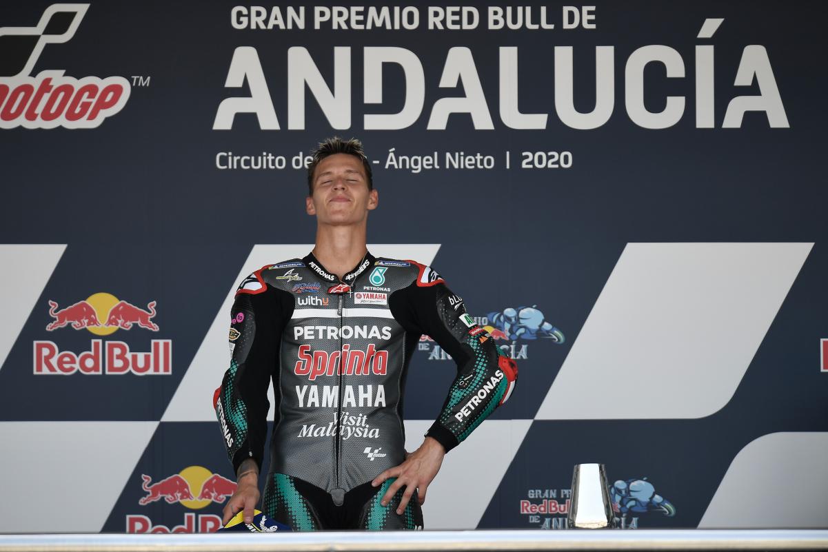 Fabio Quartararo a fait ce qu’il faut lors des deux premiers Grands Prix de la saison 2020 de MotoGP. Sur le même tracé de Jerez, en deux week-ends successifs, il a aligné pole-position et victoire. La manière dont il a concrétisé ne souffre pas non plus la contestation. Il n’a pas gagné par défaut. Il n’a donc pas à s’excuser de l’absence de Marc Marquez.